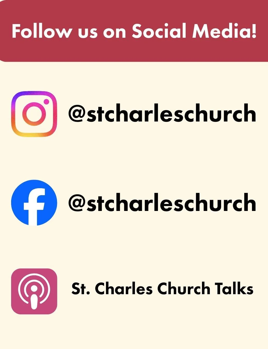At St. Charles Parish we proclaim, celebrate and live the more abundant life of God through comprehensive formation in the faith, through a rich sacramental and prayer life, and through fellowship in love. We invite everyone to a personal encounter with Jesus Christ, and to fellowship with his faithful.